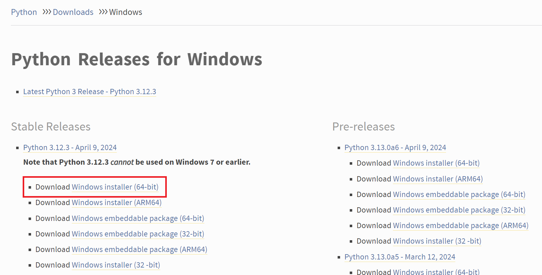 파이썬 다운로드 링크에 접속하여 사용하는 OS를 선택합니다.