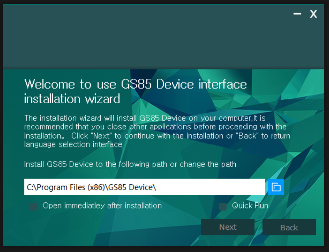 그루브스톤 홈페이지에서 GS85용 소프트웨어를 다운로드하여 설치합니다.