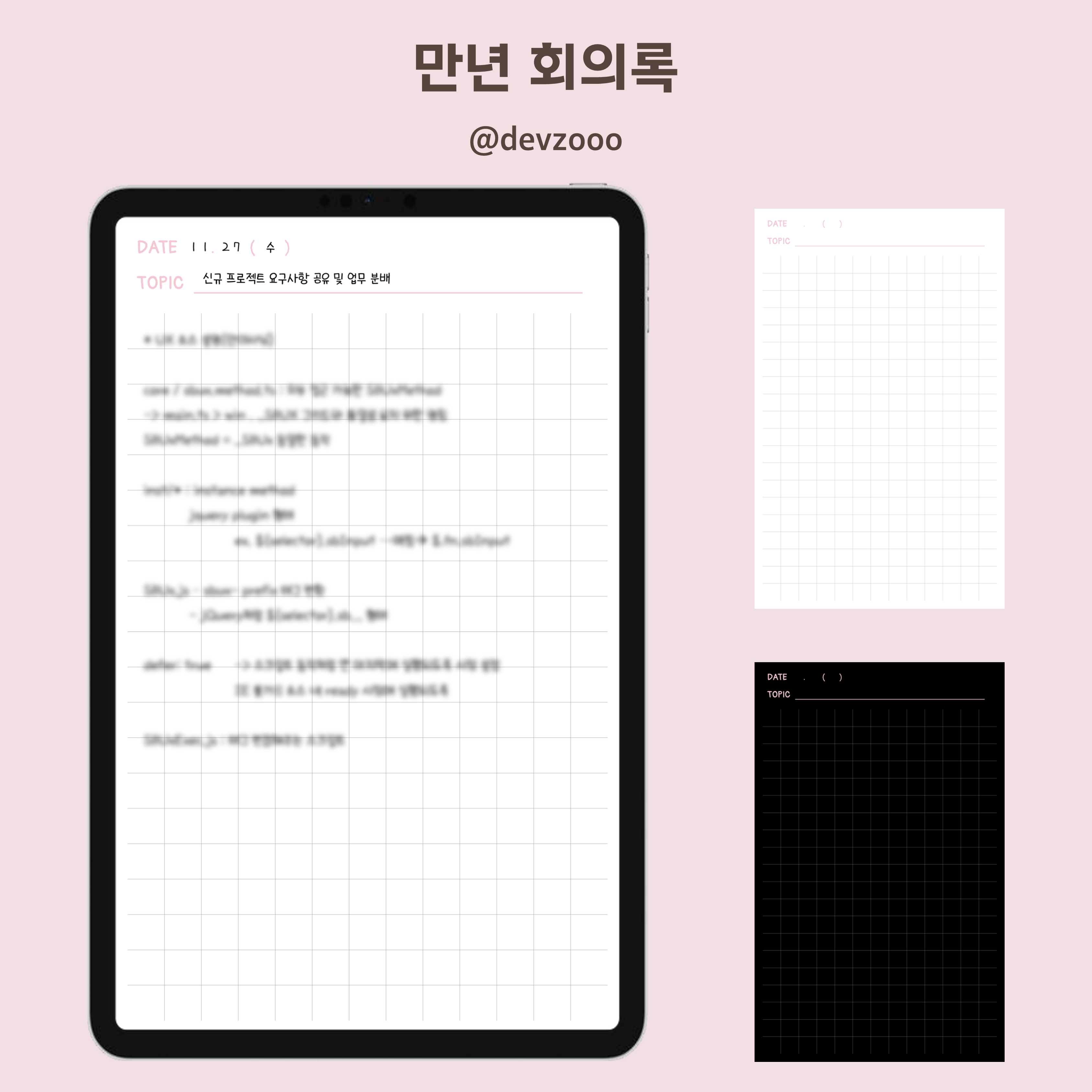 (다크 ver.) 만년 회의록 템플릿 무료 버전: devzooo