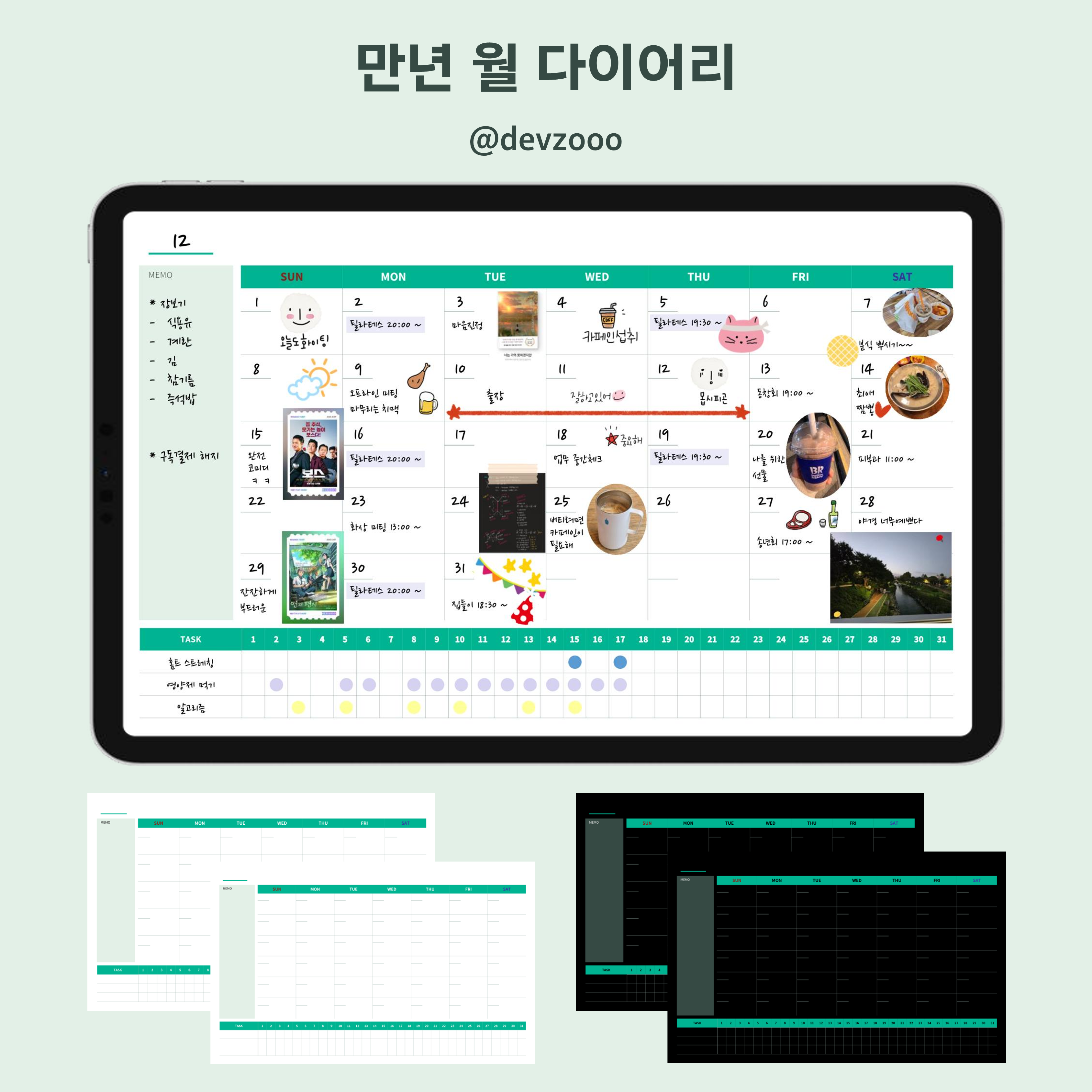 만년 월 다이어리 템플릿 무료 공유: devzooo